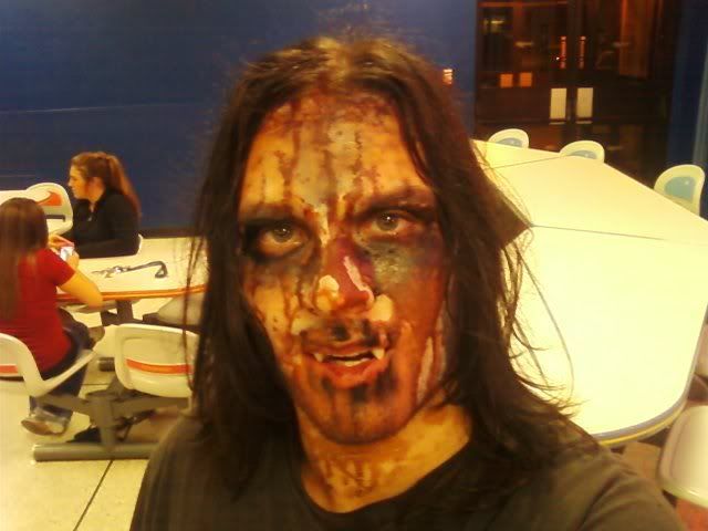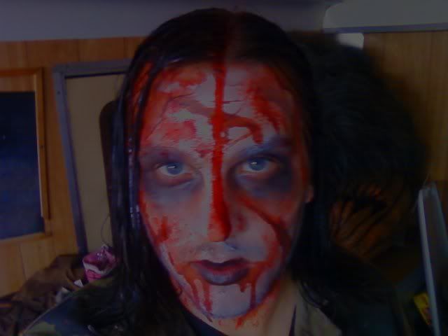 Let me think...that was the first night. I've taken a picture from almost every night I worked I think. my favorite was thursday's makeup...the first night I put the blood in my hair, and the best display so far of the blood in my hair. Washing it out looked like the shower scene in psycho, and now my hair is somewhat blood red.